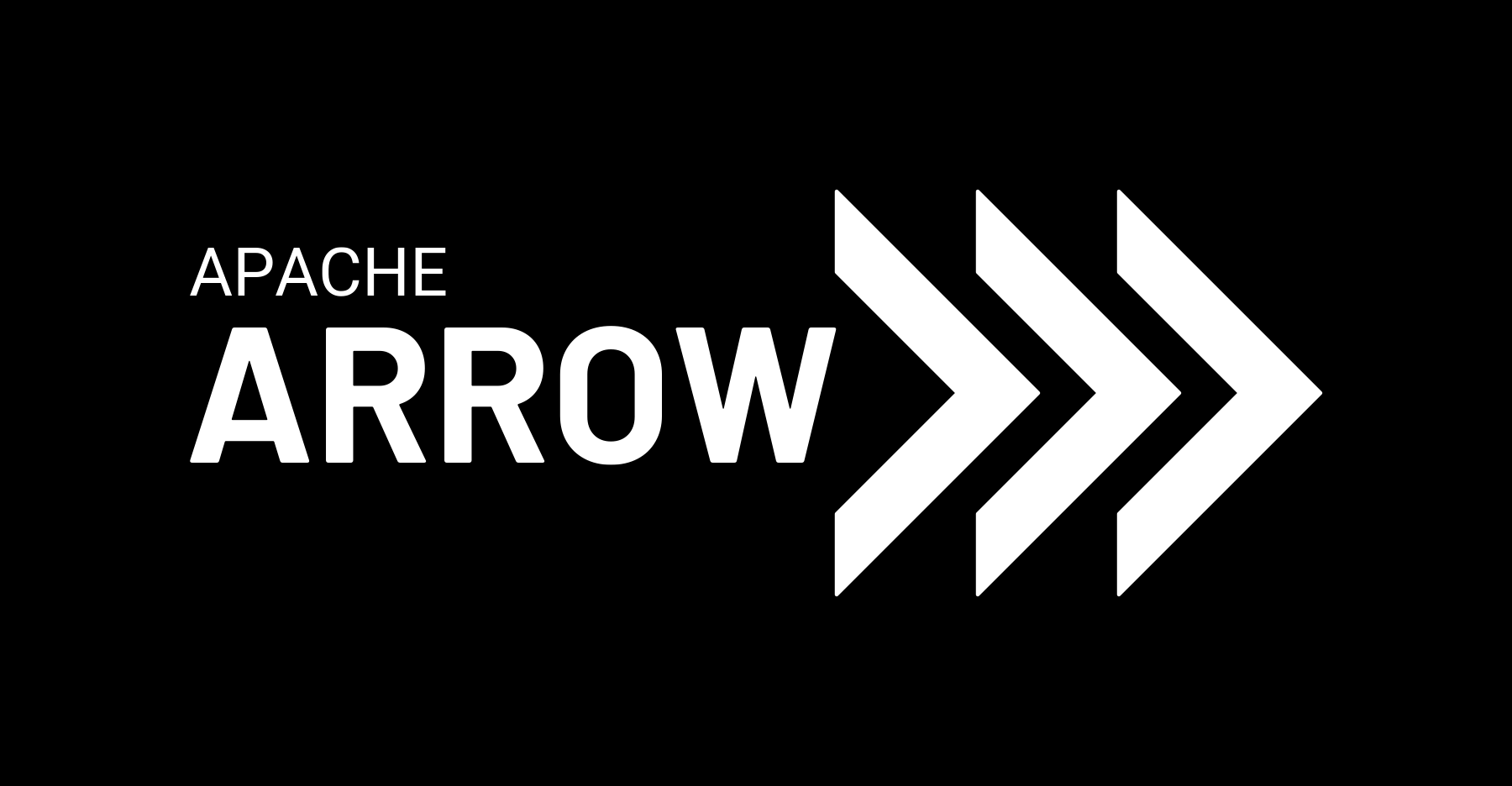 The Apache Arrow logo consists of the "Apache Arrow" logotype and the "Triple Chevron" logomark, arranged horizontally with the text placed to the left of the image. The standard "light theme" version of the logo uses black text and image against a white background, and the standard "dark theme" version of the logo is white against a black background. The light version looks like this: